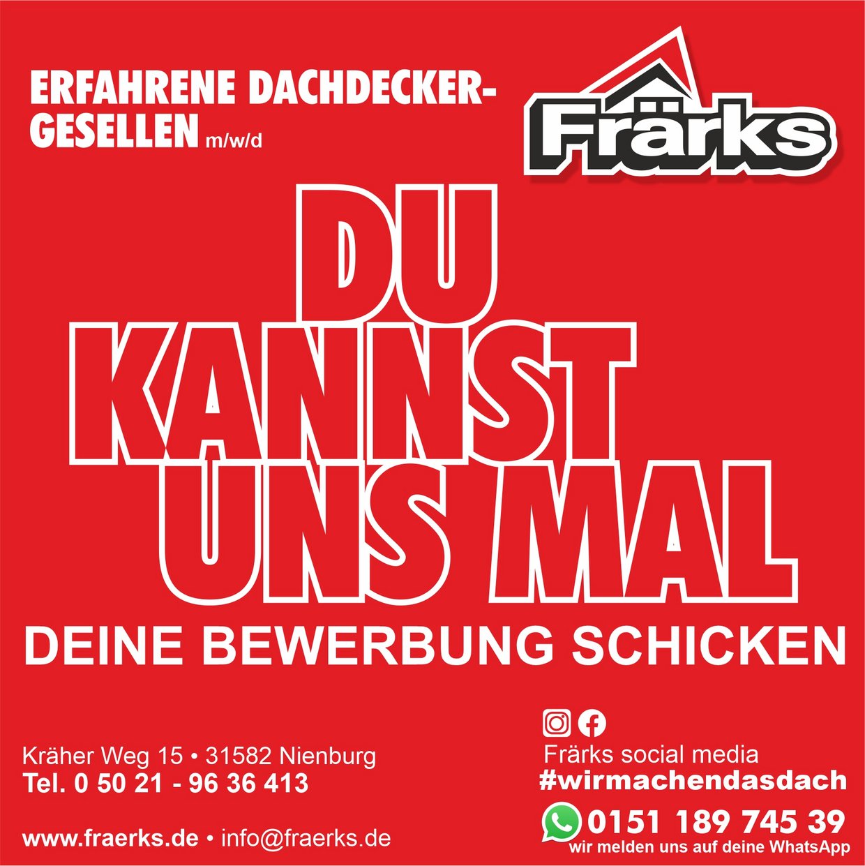 Dachdecker (m/w/d) gesucht – Komm aufs Team Frärks!